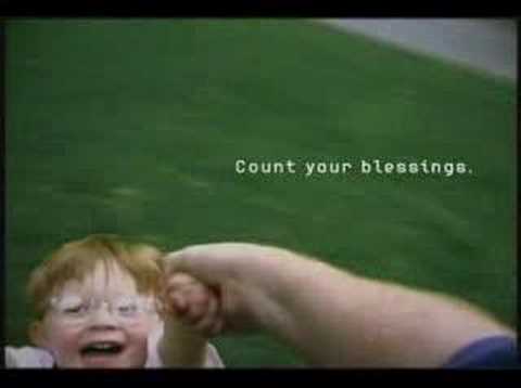 Subverted banking tropes by defining wealth through a child's laughter instead of financial gain.